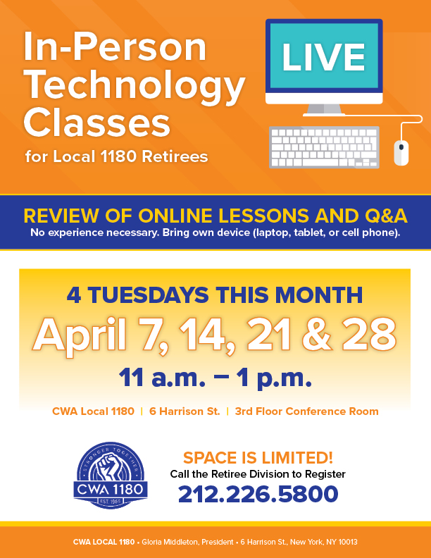Call the Retiree Division to reserve your spot today: 212.226.5800 |